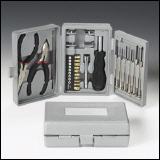 Ein Geschenk, das das «Kind im Manne» weckt! Diese handliche und kompakte Werkzeugbox findet überall seinen Platz, ob zuhause oder im Auto - und ist mit 25 Teilen bestens assortiert. Nur 16x10x5 cm klein! Ihr Werbeaufdruck kommt auf der Plakette glänzend zur Geltung.